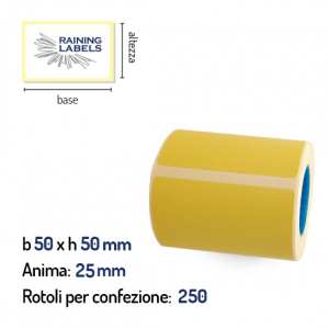 Confezione da 250 rotoli di etichette termiche gialle 50×50 mm Ø 25
