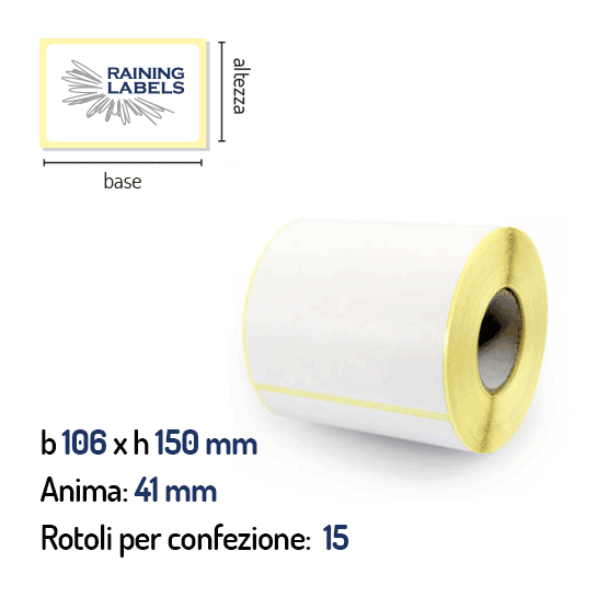 Confezione da 15 rotoli di etichette a trasferimento termico 106×150 mm Ø41