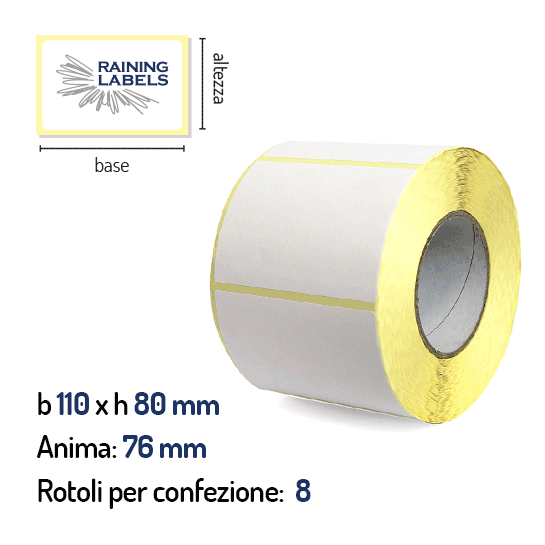 Confezione da 8 rotoli di etichette a trasferimento termico 110×80 mm Ø76