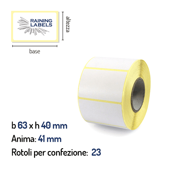 Confezione da 23 rotoli di etichette a trasferimento termico 63×40 mm Ø 41