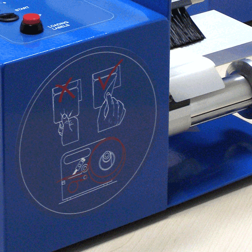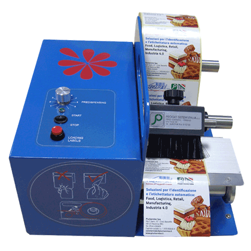 È universale e dispensa etichette di tutti i tipi, sia in carta che in acetato trasparente, con o senza gap.