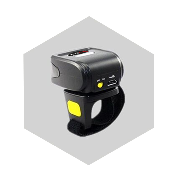 Il Ring Scanner Pluricode R200 è un lettore di codici a barre che si indossa al dito come un anello. Piccolo e maneggevole, questo lettorino pesa solamente 35 grammi e si aziona con il pollice premendo sul tastino laterale.
